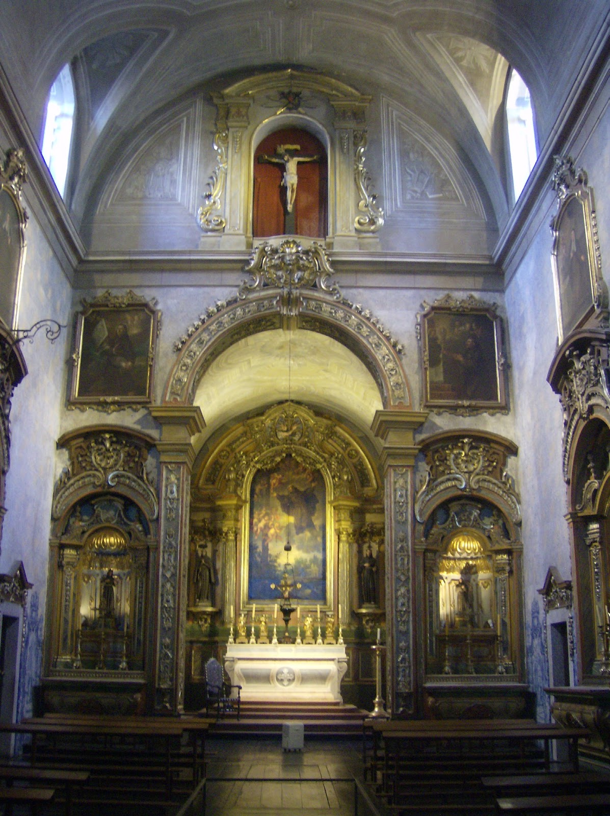 De planta em U, desenvolve-se em 3 corpos rectangulares articulados em volta de uma escadaria de 4 lanços, decorada por azulejos, que representam a estigmação de S. Pedro,e que conduz a um adro sobrelevado e lajeado. A entrada para a Igreja, rasgada sob um pórtico de arcos e galilé, dá acesso simultâneo às Casas do Convento e à Capela dos Lencastres, edificada neste conjunto mais tardiamente, entre 1686 e 1692. A Igreja, de nave única profusamente iluminada por grandes janelões, é predominantemente barroca, traduzindo uma harmoniosa simbiose entre talha dourada e azulejos monocromos setecentistas. De destacar, ainda, os frescos do tecto e a tela original de Quillard, representando "A Coroação de Nossa Senhora pela Santíssima Trindade". Outro aspecto curioso desta área, que engloba a Igreja e o Convento, deve-se ao facto de ter sido constituída em necrópole de pessoas ilustres, entre as quais Manuel da Maia, sepultado na Casa do Capítulo. A partir de 1833 o Convento ficou afecto à Misericórdia de Lisboa e em 1943 passou a ser administrado, em acordo de cooperação, pelas Irmãs da Província Portuguesa da Congregação da Apresentação de Maria. Actualmente designa-se por Instituto de S. Pedro de Alcântara. Este imóvel insere-se no tecido consolidado do Bairro Alto, classificado Conjunto de Interesse Público.