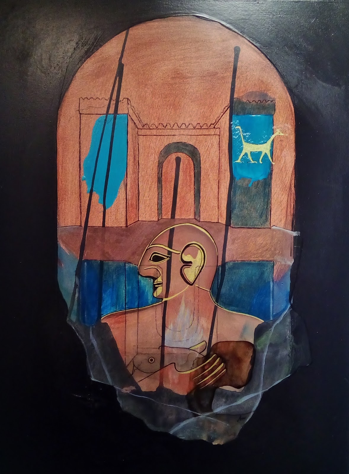Mergulhei num passado longínquo, na forma de representar e nos motivos dessa época, com o filtro abstrato da pintura que represento. Imaginando e vivenciando através desses relatos em pedra, um universo de interpretações possíveis que relacionadas entre si manifestam uma energia intemporal, presente como forma de análise e simultâneamente gravada na memória.